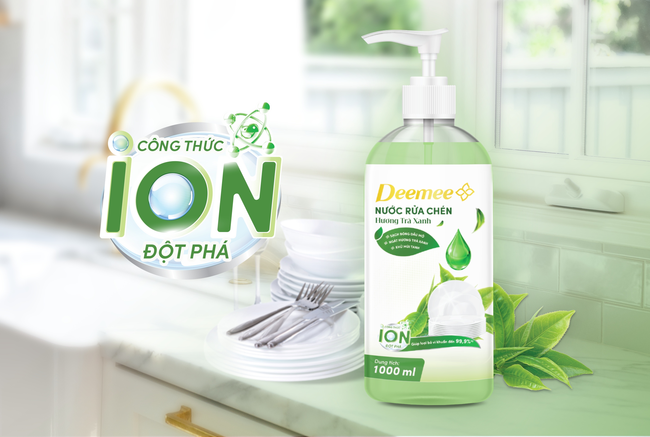 Nước rửa chén Deemee Hương Trà Xanh với công thức ION đột phá diệt khuẩn 99.9%(*) giúp chén dĩa luôn sạch bóng, khử mùi tanh, đánh bay dầu mỡ và ngát hương trà xanh. Sản phẩm an toàn cho da tay.