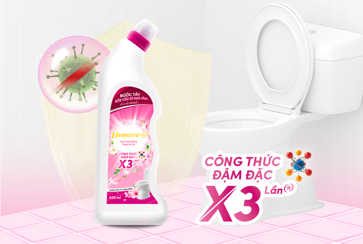 Nước Tẩy Bồn Cầu Deemee Hương Hoa Cỏ Thiên Nhiên là giải pháp vệ sinh hiện đại giúp làm sạch mạnh mẽ mà vẫn giữ được sự dịu nhẹ. Công thức đậm đặc gấp 3 lần giúp đánh bay vết bẩn cứng đầu.